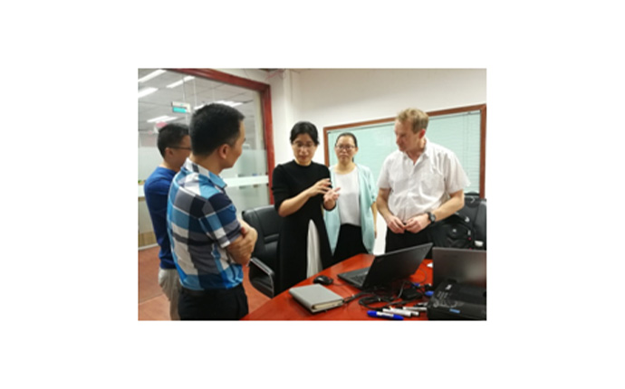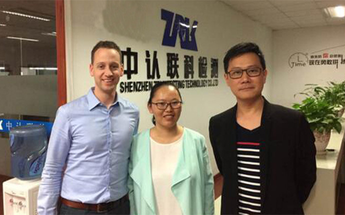 荷南VICTRON ENERGY 的工程師(左一)到我司參考實驗室,對我司電池檢測能力給予高度認可,并和我司銷售總監Nicky(中間)深入交流,中認聯科檢測成為VICTRON ENERGY在中國的制定檢測實驗室