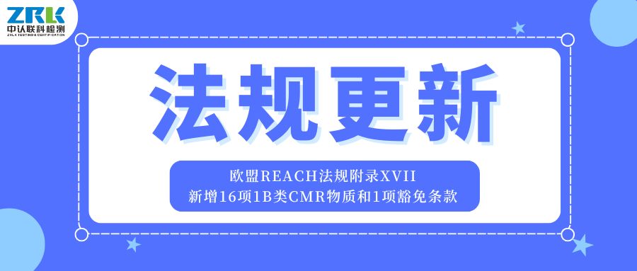 2025年8月11日,歐盟在其官方公報(bào)上發(fā)布(EU) 2025/1731法規(guī),修訂了REACH法規(guī)附件XVII中關(guān)于致癌、致突變、致生殖毒性(CMR)物質(zhì)的限制清單。此次修訂新增了16項(xiàng)1B類CMR物質(zhì)和1項(xiàng)豁免條款,并將于2025年9月1日起生效。